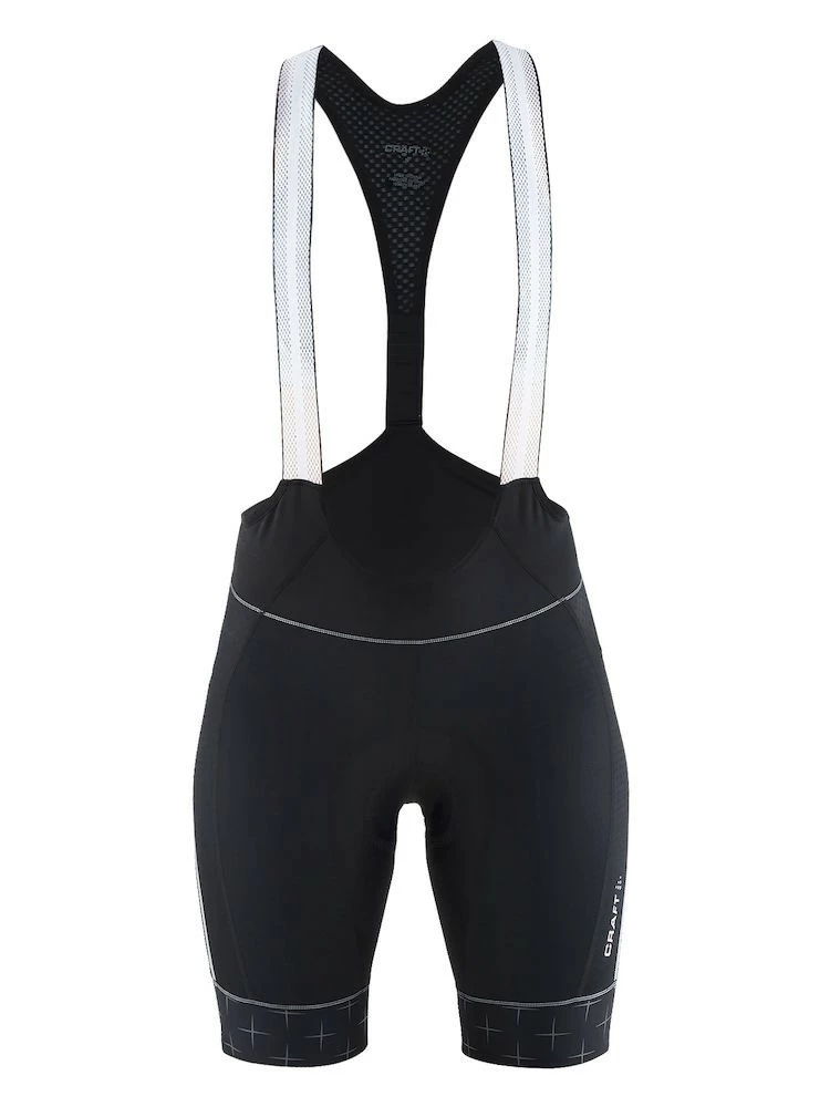 Craft cykelbuks til damer med seler som kan justeres i længden. Gode reflekser på benene. Buksen er i et svedtransporterende, hurtigtørrende og strækbart materiale.